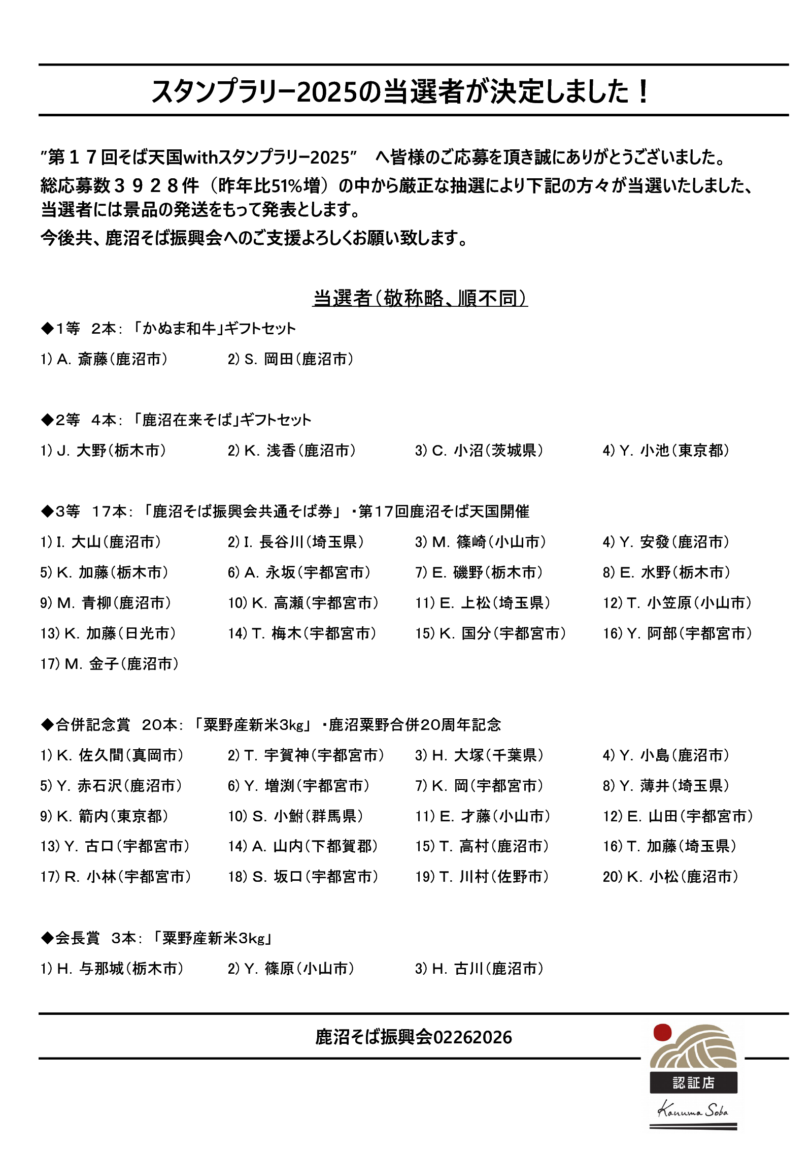 “そば天国withスタンプラリー2025”の当選者が決定しました!
